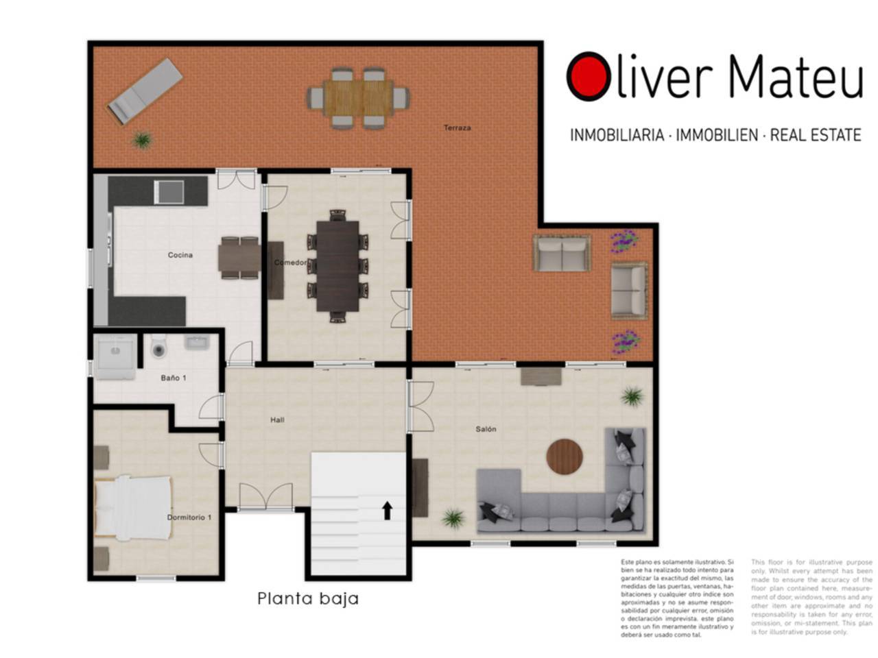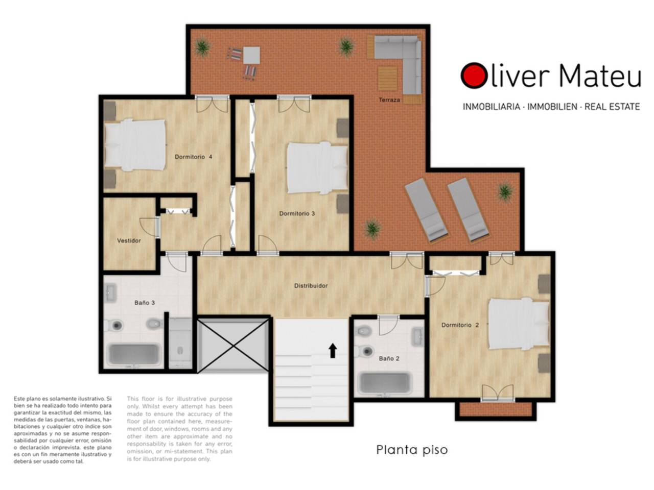 In the urbanisation Son Puig, very close to several golf courses, stands this fantastic villa with garden and swimming pool. 578m² plot. On the ground floor there is the living-dining room, kitchen, one bedroom, one bathroom and several terraces. On the first floor there are three bedrooms with terrace and two bathrooms. In the basement we find a large playroom and a garage with space for three vehicles.