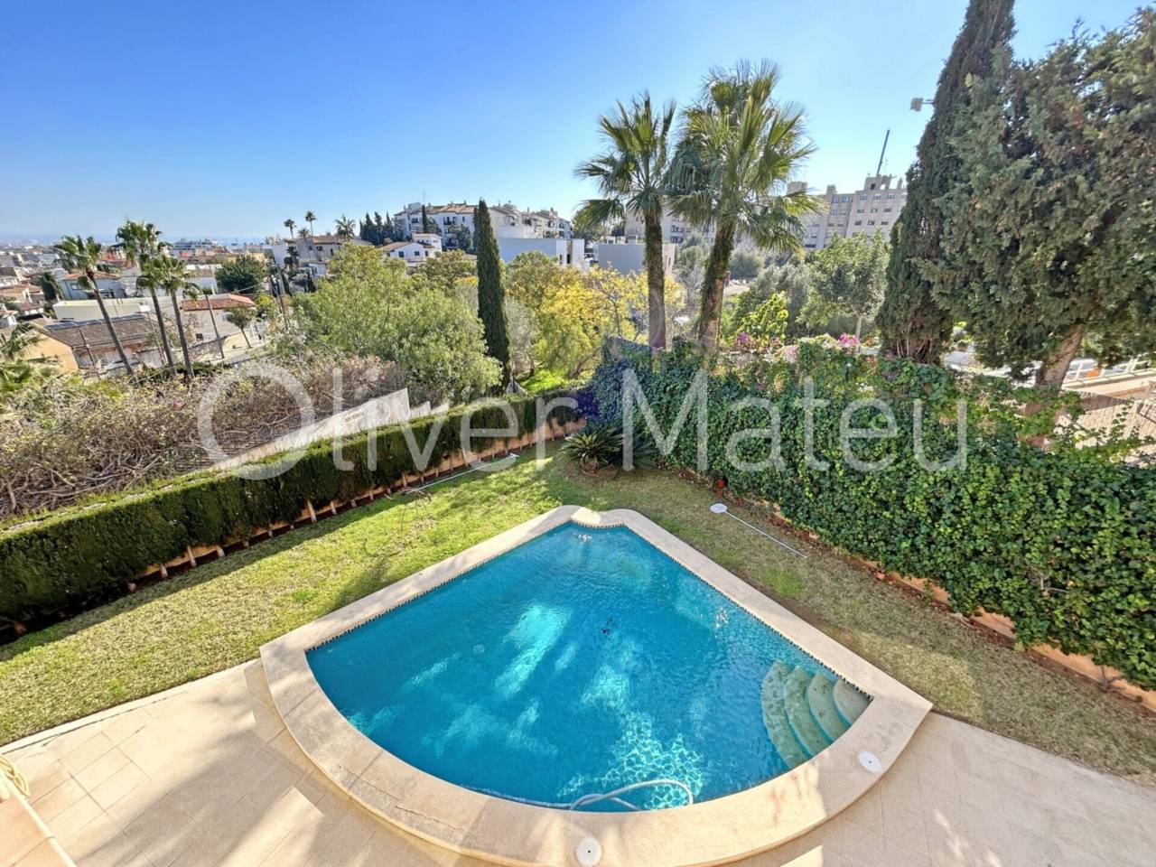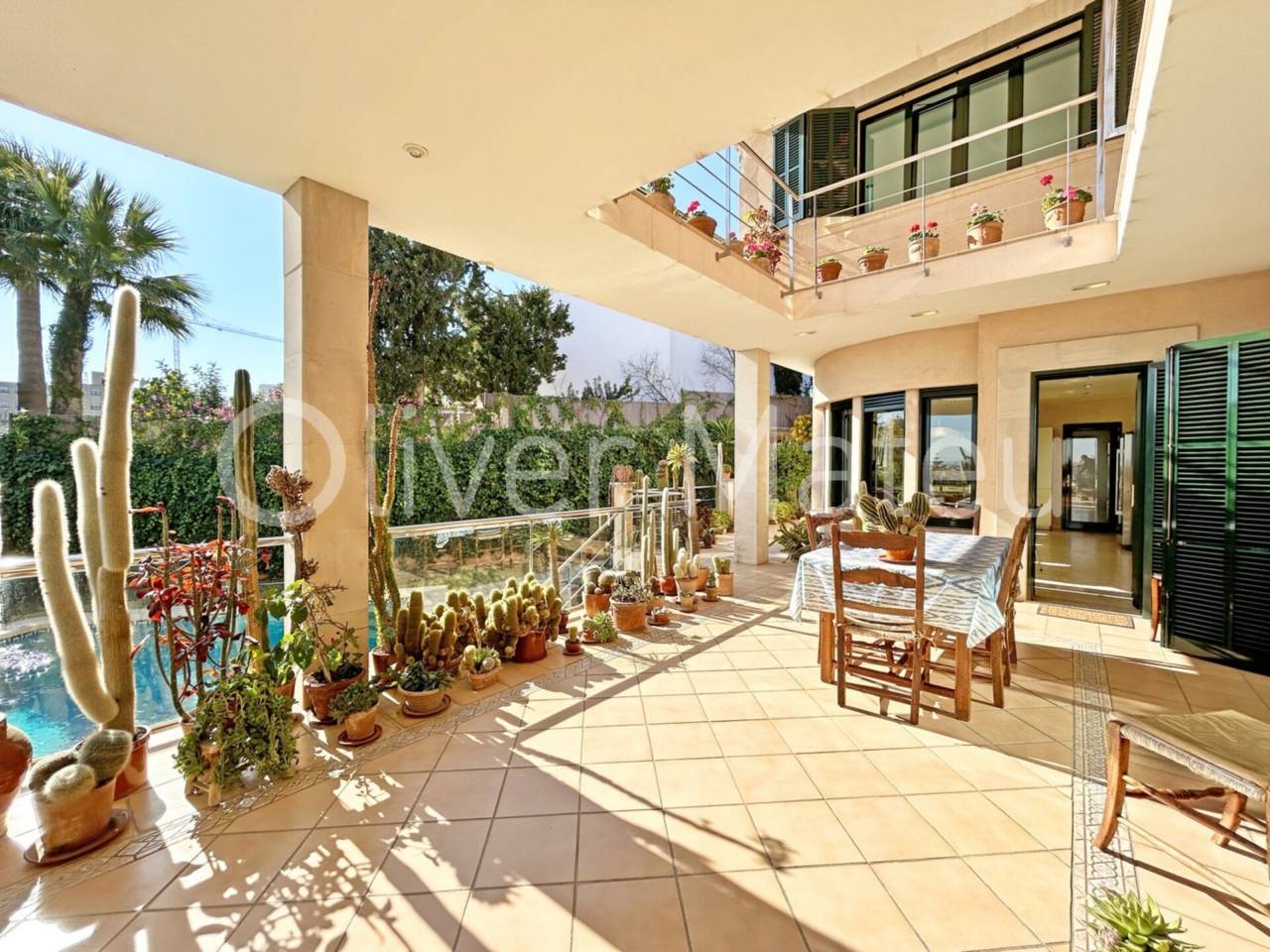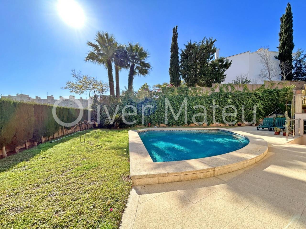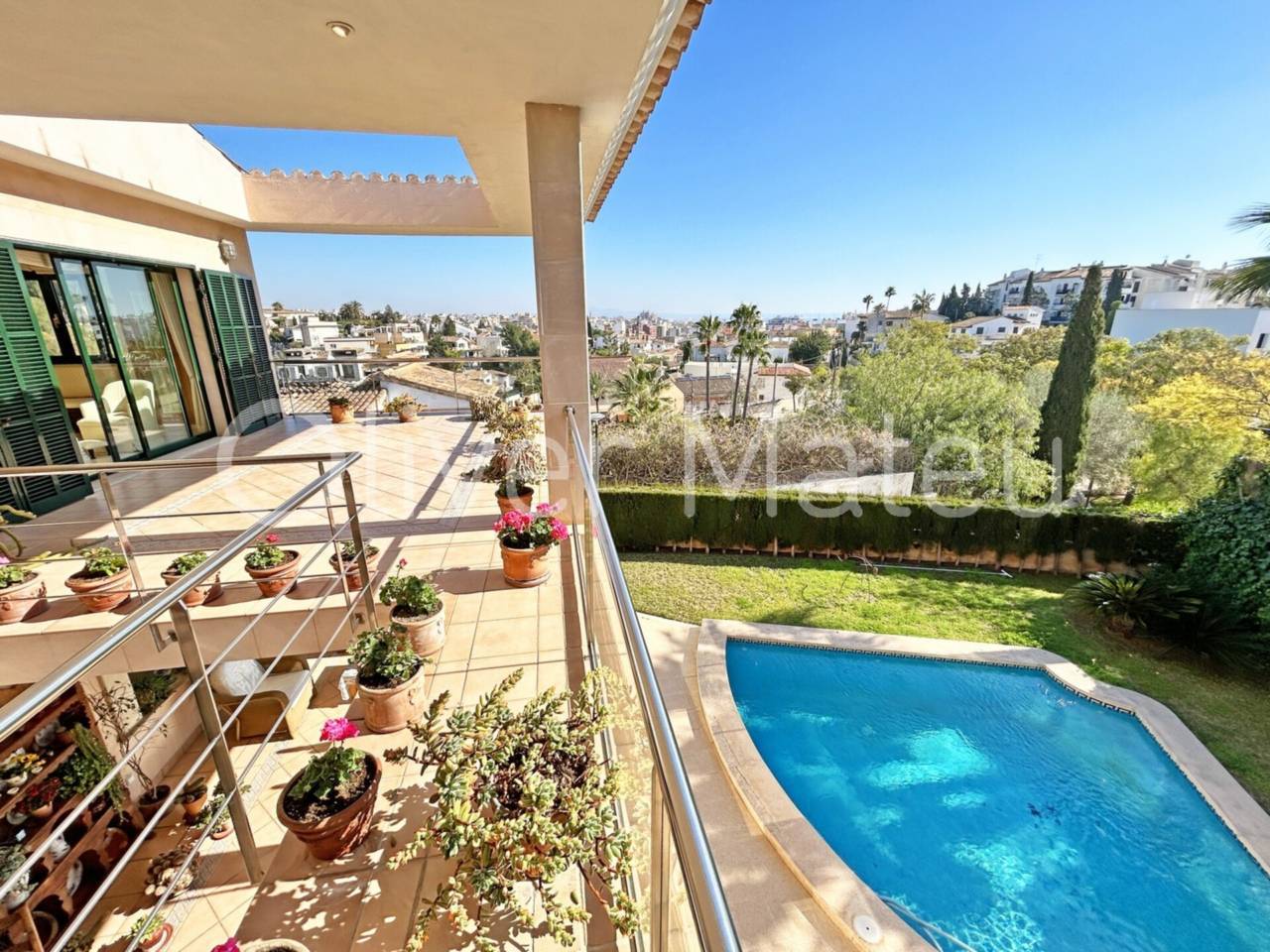 Located in the sought-after residential area "Sa Teulera", spectacular villa on 3 levels with a total of 454 m ² on a 595 m ² plot. Exceptional location a mere 5 minutes from Paseo Maritimo, next to all best schools, public transport and easy access to the motorway. Very ample and bright spaces, light-filled rooms and views of Palma with its cathedral in the background. It features 4 double bedrooms with fitted wardrobes, ample living/dining room with fireplace and access to a beautiful terrace, fully equipped dine-in kitchen, 4 bathrooms, a guest toilet and a small office. Several terraces, garage/basement with storage rooms and a lush garden with swimming pool. Please contact us for further details, we will be pleased to be of assistance.