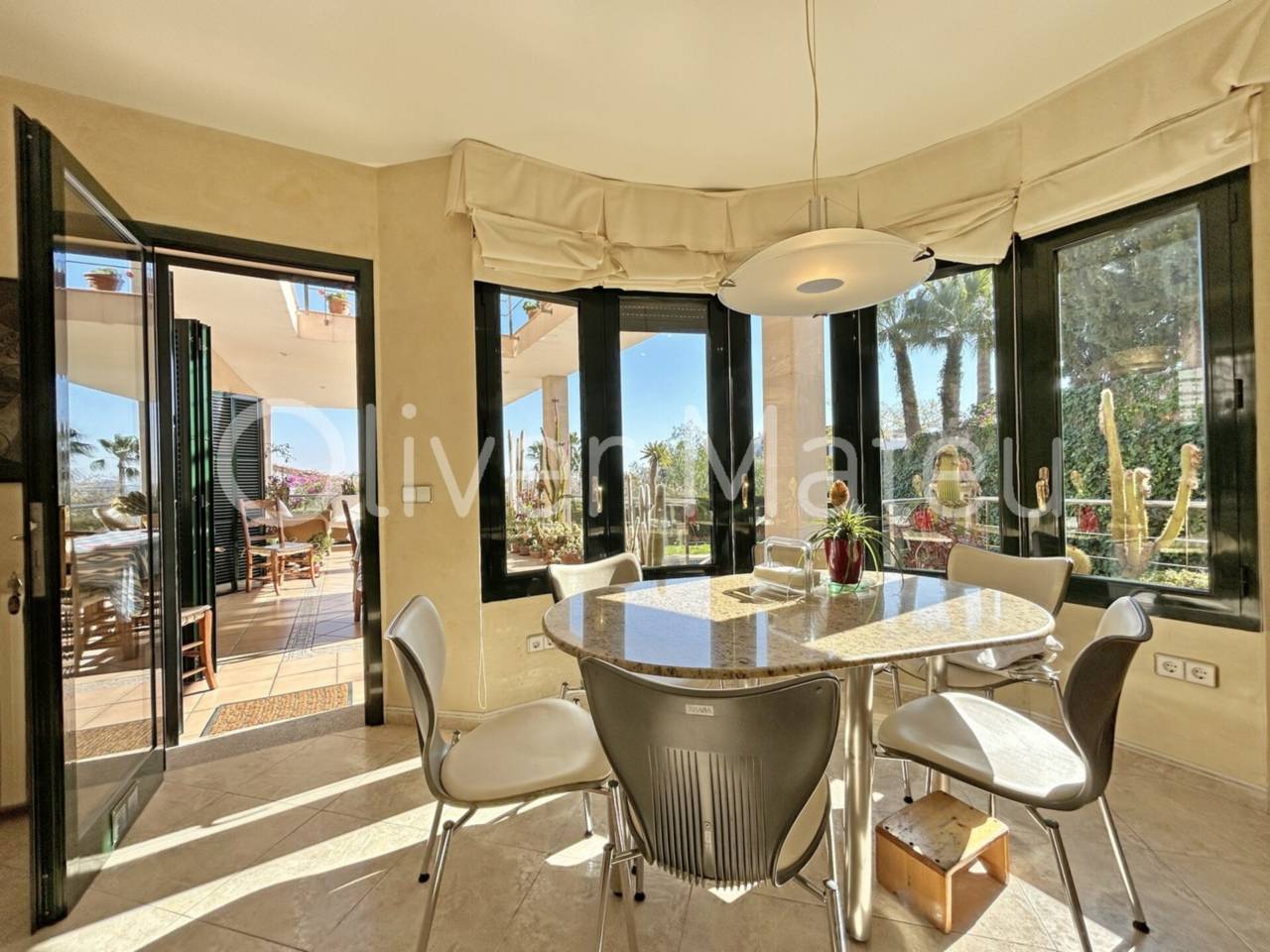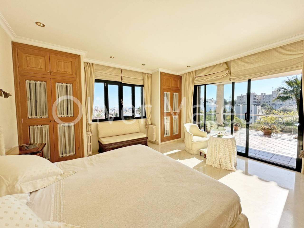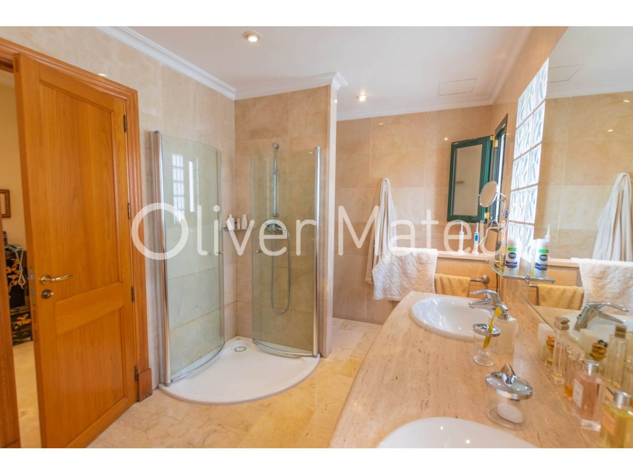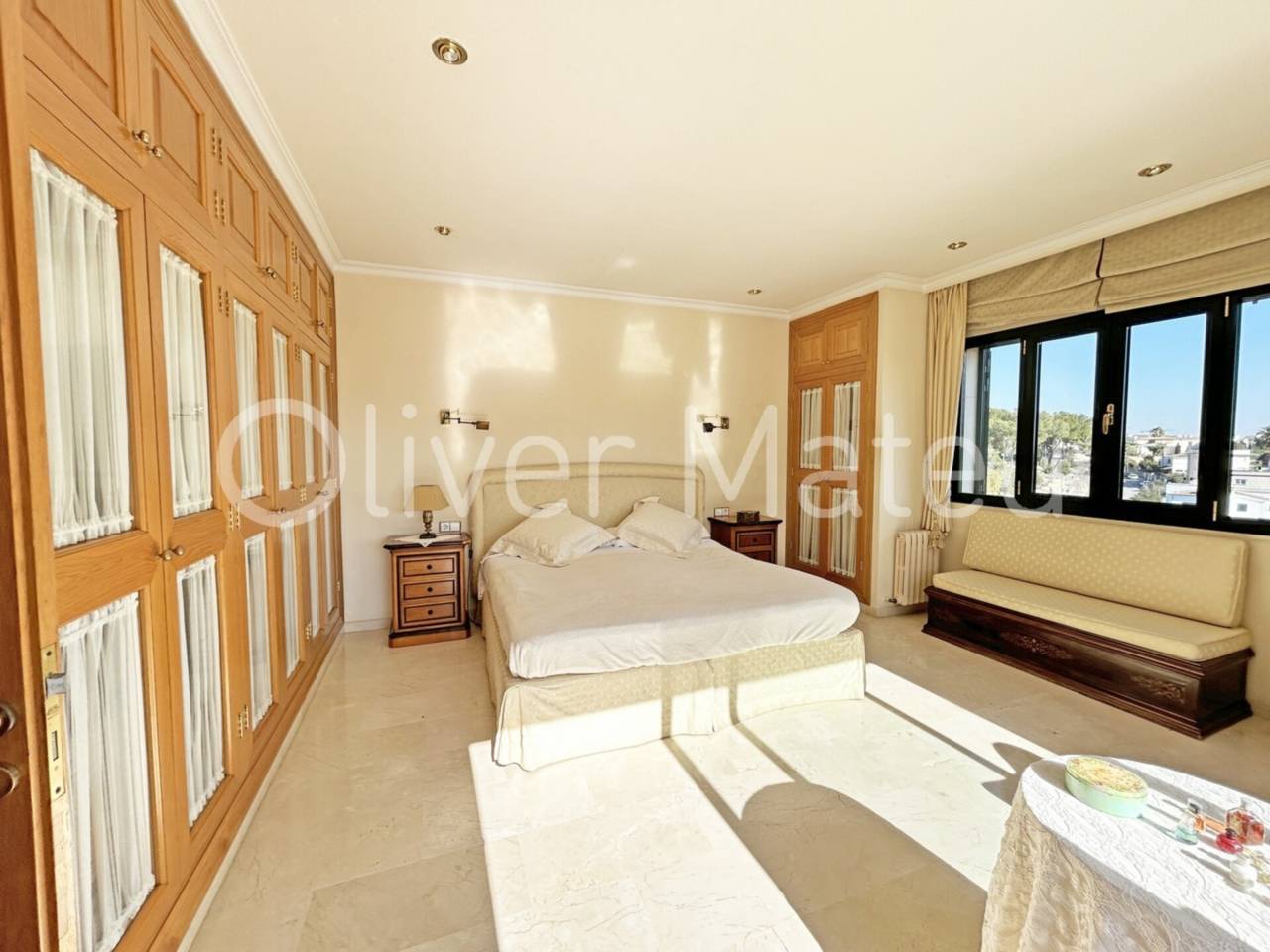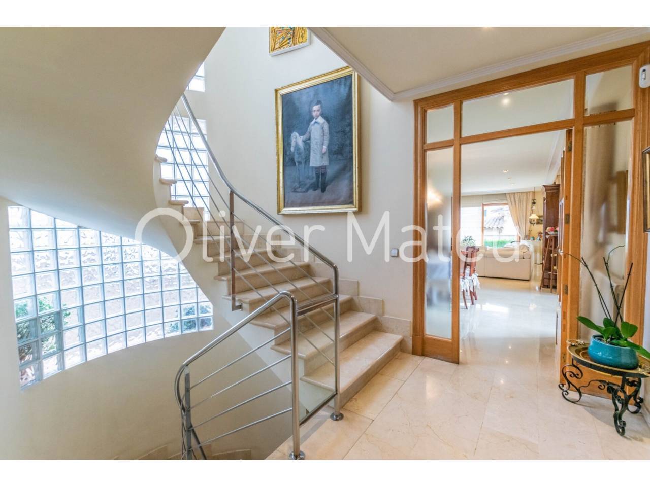 Located in the sought-after residential area "Sa Teulera", spectacular villa on 3 levels with a total of 454 m ² on a 595 m ² plot. Exceptional location a mere 5 minutes from Paseo Maritimo, next to all best schools, public transport and easy access to the motorway. Very ample and bright spaces, light-filled rooms and views of Palma with its cathedral in the background. It features 4 double bedrooms with fitted wardrobes, ample living/dining room with fireplace and access to a beautiful terrace, fully equipped dine-in kitchen, 4 bathrooms, a guest toilet and a small office. Several terraces, garage/basement with storage rooms and a lush garden with swimming pool. Please contact us for further details, we will be pleased to be of assistance.