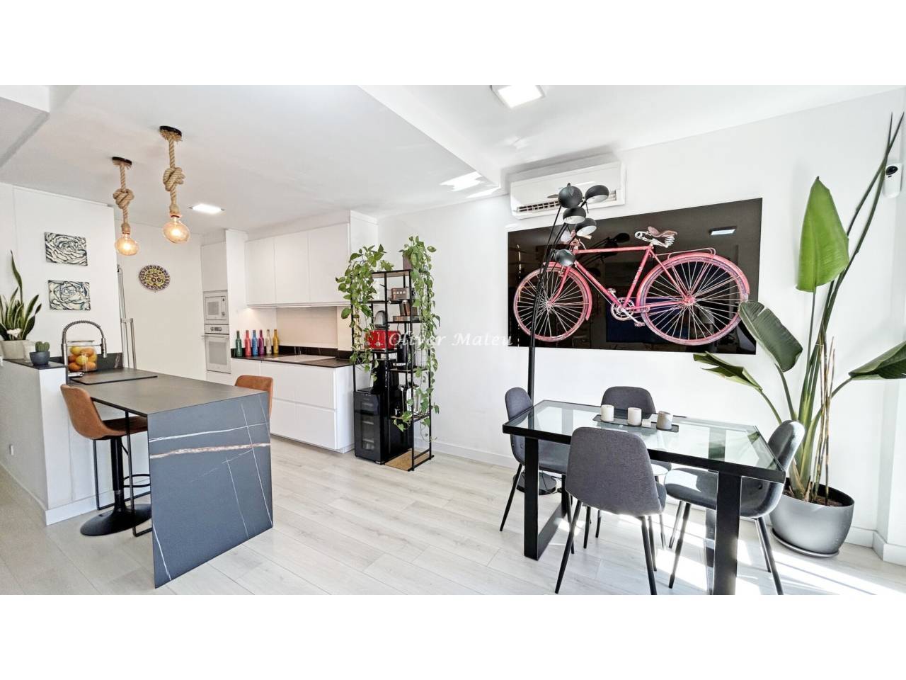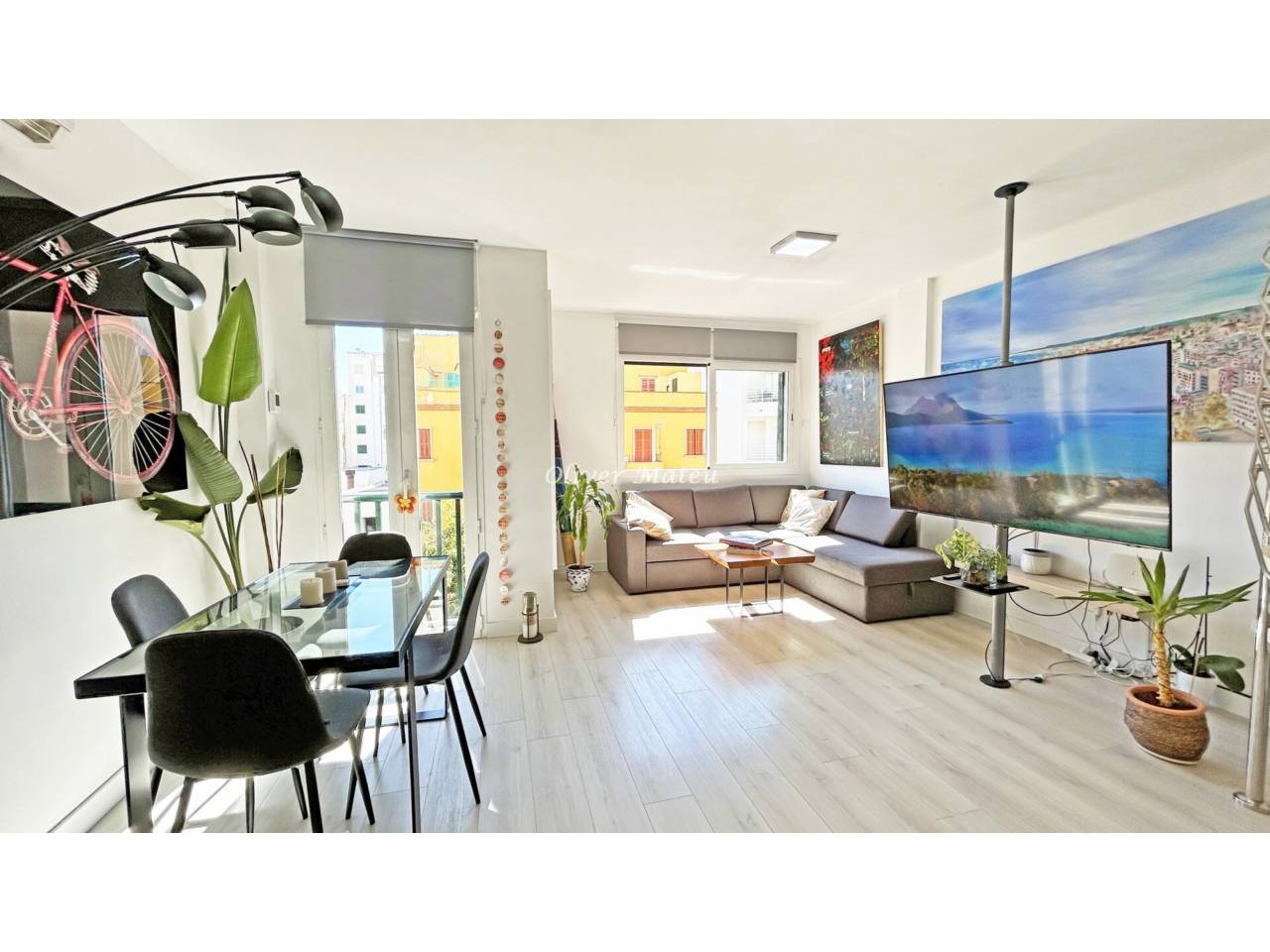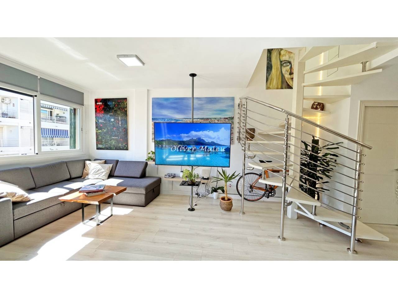 Are you looking to live in the heart of Palma with all the comforts? This magnificent duplex penthouse, in a modern building with an elevator (year 2012), offers you the perfect balance between location, design, and comfort. With 95 m² built, it is distributed in: -2 spacious bedrooms full of natural light. -2 full bathrooms and a guest toilet. -Bright living-dining room, with access to a modern-style kitchen with breakfast bar. The main feature is its spectacular private solarium terrace, ideal for enjoying meals and dinners outdoors, relaxing in the sun, or refreshing in its outdoor shower. Among its qualities are: -Parquet floors. -Lacquered white doors. -Double glazed windows. -Hot/cold air conditioning. Building with few neighbors, just steps from the historic center. You will also have the possibility to rent a parking space very close by. A unique home for those who dream of a central, modern penthouse with a spectacular terrace in Palma.