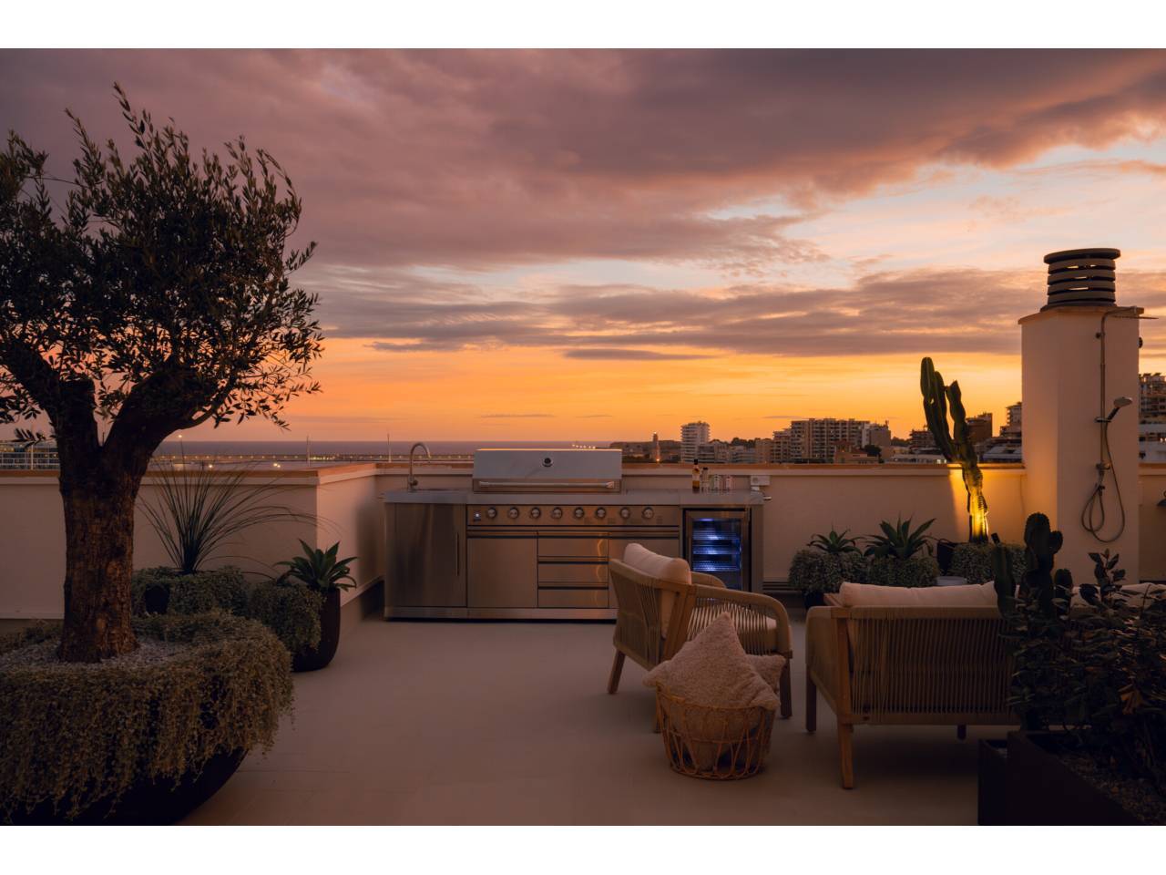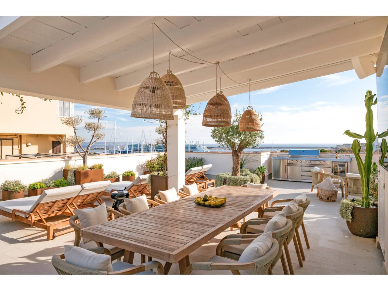 This elegant penthouse redefines the concept of comfort and exclusivity in one of the most coveted areas of Palma. It combines contemporary design, state-of-the-art technology, and a privileged environment facing the sea. Key features The property has direct access, private parking, a communal pool, and concierge service. With a total of 238 m², it offers 136 m² indoors and an impressive private rooftop terrace of 102 m², ideal for enjoying the Mediterranean climate throughout the year. It has three en-suite bedrooms and three bathrooms, with a meticulous selection of high-quality materials and finishes. Views and surroundings From each room, panoramic views of the port, the bay, and the Club del Mar can be appreciated. The upper terrace is a perfect retreat for outdoor dining or moments of relaxation while contemplating the sunset over the Mediterranean. ·Quality and equipment ·Air conditioning hot/cold. ·Underfloor heating in the bathrooms. ·Integrated Sonos sound system. ·Gaggenau appliances. ·Custom-made fitted wardrobes. Exclusivity and value A true gem on the first line of the Paseo Marítimo, combining luxury, location, and design for those seeking an incomparable residence in Palma or a solid real estate investment. Includes a private parking space.