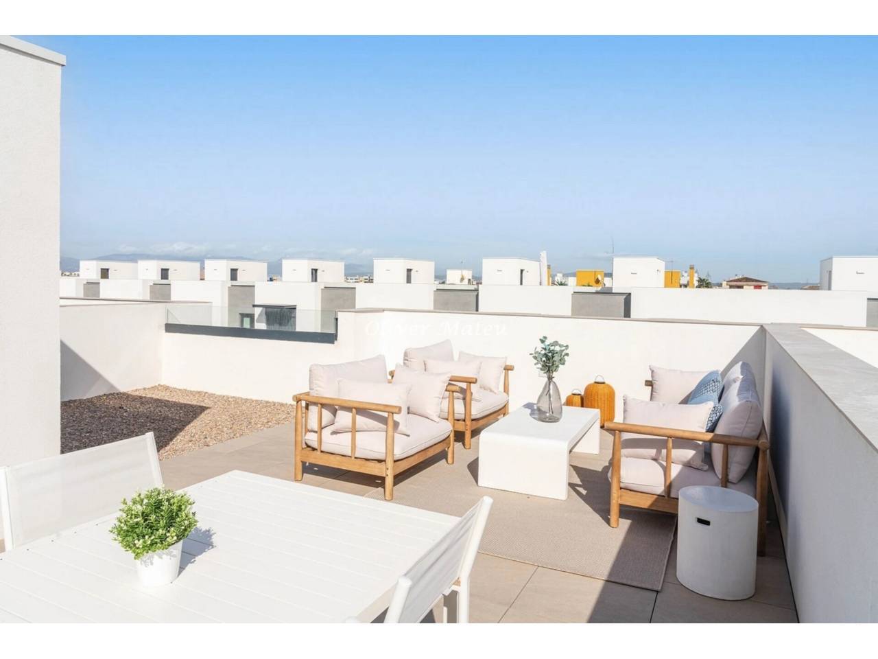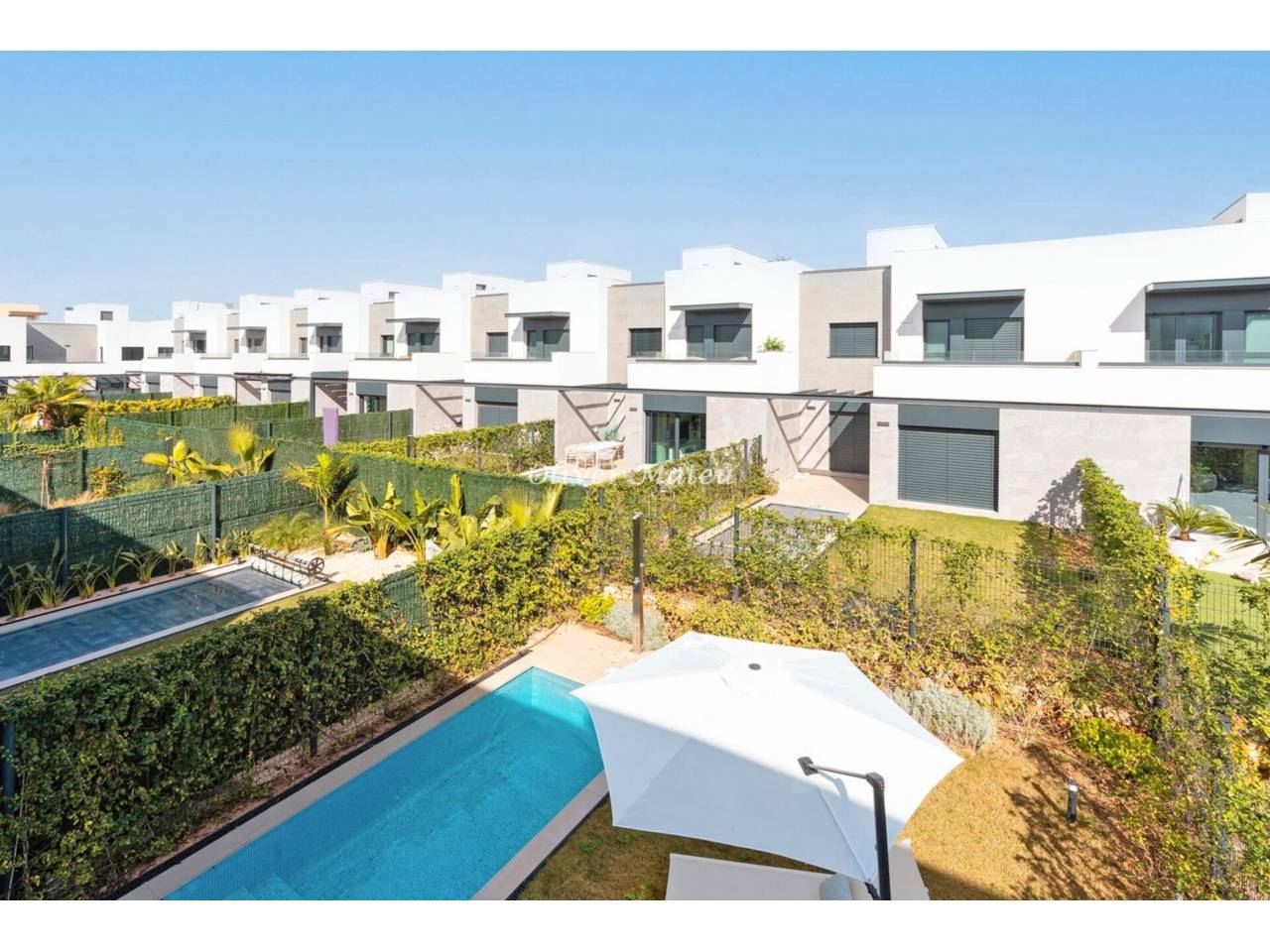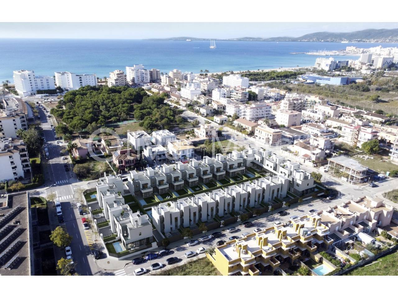 Imagina despertar cada día a pocos pasos de la arena de Playa de Palma, disfrutar del sol en tu propio jardín con piscina privada y terminar la jornada contemplando el atardecer desde tu azotea. Esta exclusiva vivienda adosada de obra nueva combina ubicación privilegiada, diseño contemporáneo y el auténtico estilo de vida mediterráneo. Con 124 m² distribuidos en dos plantas más solárium, la casa ofrece cuatro dormitorios —uno en planta baja— y tres baños completos, incluyendo una elegante suite principal con vestidor. El corazón de la vivienda es su amplio salón-comedor con cocina abierta de aproximadamente 40 m², un espacio luminoso y acogedor que conecta directamente con la terraza cubierta y el jardín privado de 130 m² con piscina, creando una perfecta continuidad entre interior y exterior. La azotea de 35 m² se convierte en un rincón especial para relajarse, compartir momentos o simplemente disfrutar del clima de Mallorca durante todo el año. Equipada con aire acondicionado, calefacción por suelo radiante, altas calidades y dos plazas de aparcamiento exterior, esta propiedad está pensada para ofrecer máximo confort en cada detalle. A solo 15 minutos del centro de Palma y a 8 minutos del aeropuerto, es una oportunidad única para estrenar hogar junto al mar, en una de las zonas más demandadas de la isla.