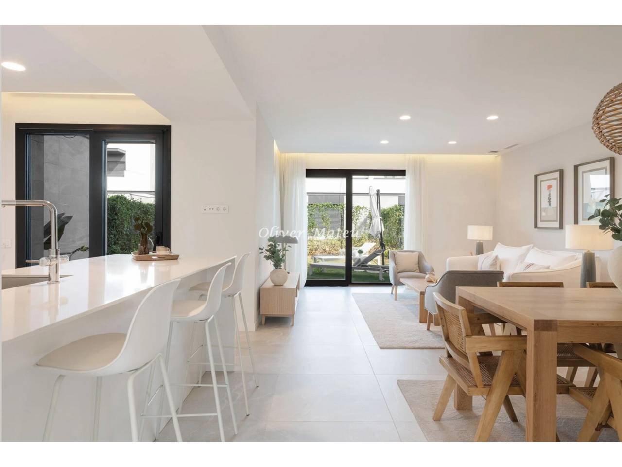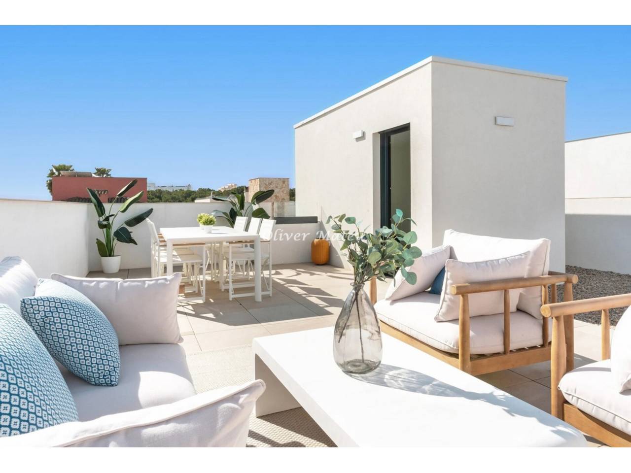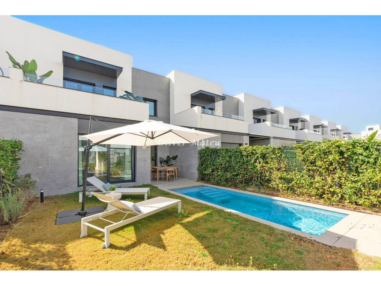 Imagina despertar cada día a pocos pasos de la arena de Playa de Palma, disfrutar del sol en tu propio jardín con piscina privada y terminar la jornada contemplando el atardecer desde tu azotea. Esta exclusiva vivienda adosada de obra nueva combina ubicación privilegiada, diseño contemporáneo y el auténtico estilo de vida mediterráneo. Con 124 m² distribuidos en dos plantas más solárium, la casa ofrece cuatro dormitorios —uno en planta baja— y tres baños completos, incluyendo una elegante suite principal con vestidor. El corazón de la vivienda es su amplio salón-comedor con cocina abierta de aproximadamente 40 m², un espacio luminoso y acogedor que conecta directamente con la terraza cubierta y el jardín privado de 130 m² con piscina, creando una perfecta continuidad entre interior y exterior. La azotea de 35 m² se convierte en un rincón especial para relajarse, compartir momentos o simplemente disfrutar del clima de Mallorca durante todo el año. Equipada con aire acondicionado, calefacción por suelo radiante, altas calidades y dos plazas de aparcamiento exterior, esta propiedad está pensada para ofrecer máximo confort en cada detalle. A solo 15 minutos del centro de Palma y a 8 minutos del aeropuerto, es una oportunidad única para estrenar hogar junto al mar, en una de las zonas más demandadas de la isla.