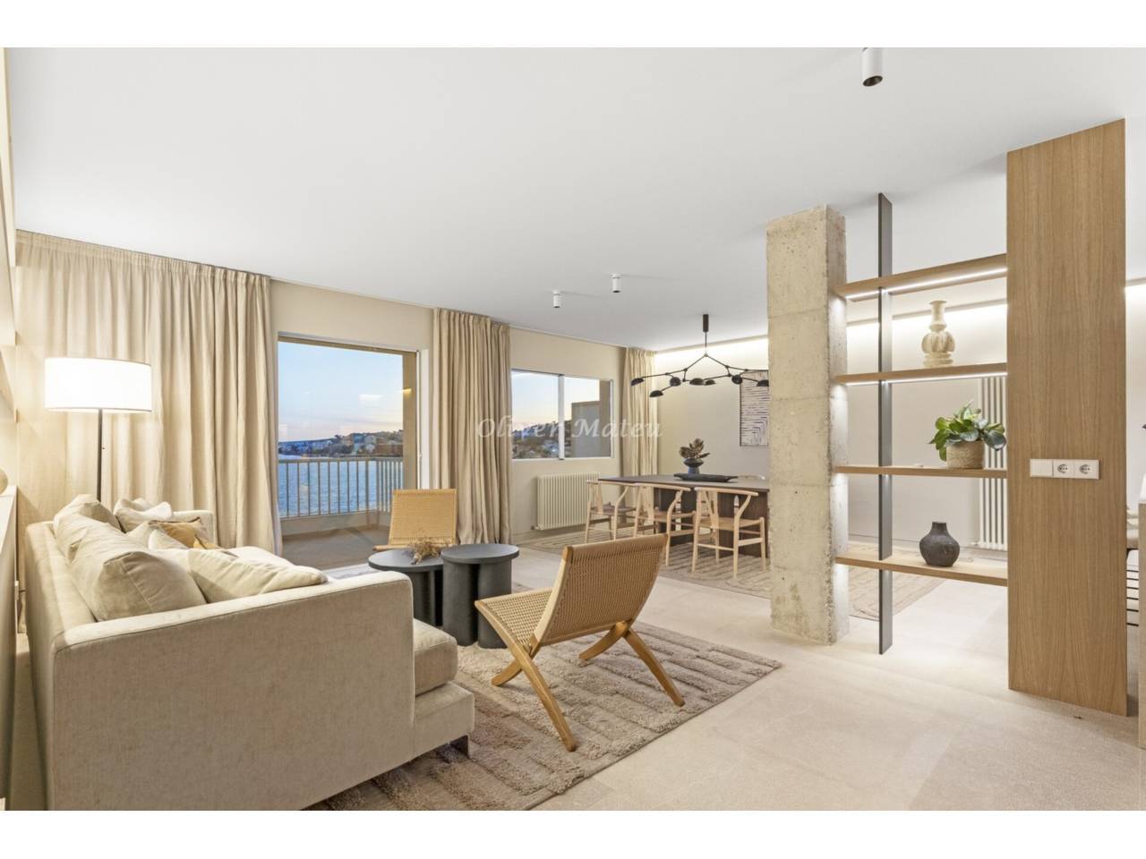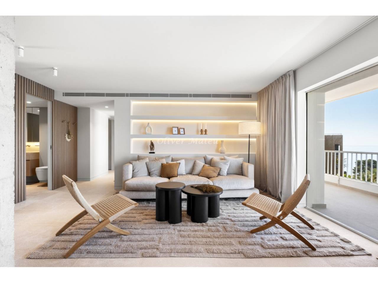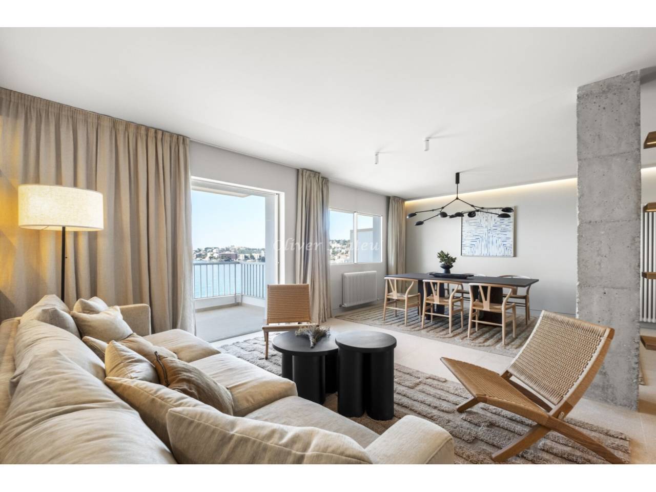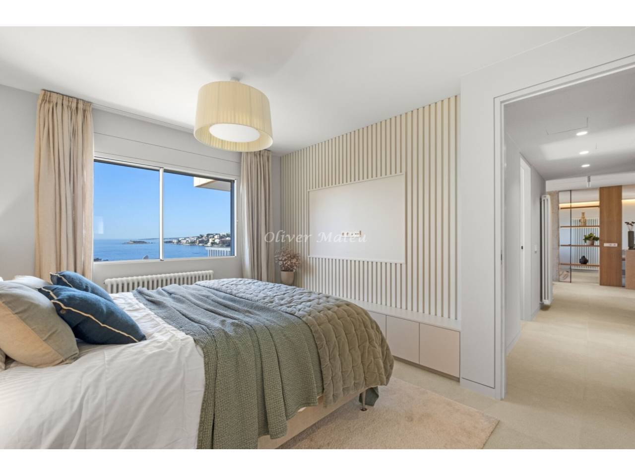 Se vende espectacular piso recién reformado en Cala Major, a tan solo 100 metros de la playa. Esta vivienda, situada en una planta alta y orientada al sur, ofrece sol durante todo el día y unas vistas inmejorables al mar, la bahía y las montañas. Con una superficie de 145 m², el piso se distribuye en tres amplios dormitorios dobles y tres baños, uno de ellos en suite. La zona de día destaca por un elegante concepto de planta abierta que integra una moderna cocina con isla y electrodomésticos Bosch, el salón y el acceso directo a una terraza de 15 m², perfecta para disfrutar del entorno y la brisa marina. El inmueble ha sido renovado por completo con materiales de primera calidad: grandes ventanales con excelente aislamiento, suelos de piedra natural, calefacción por suelo radiante en los baños y detalles exclusivos como una vinoteca climatizada, ideal para los amantes del vino. El diseño interior combina la elegancia contemporánea con el encanto mediterráneo, y la vivienda se entrega completamente amueblada con piezas de reconocidas marcas. Además, la propiedad incluye una amplia plaza de garaje en el edificio, zona de lavandería, aire acondicionado, ascensor y todas las comodidades para entrar a vivir. Una oportunidad única para quienes buscan lujo, confort y una ubicación privilegiada junto al mar en una de las zonas más demandadas de Mallorca.