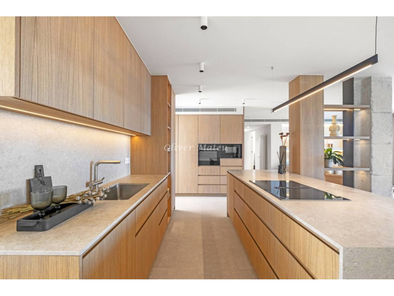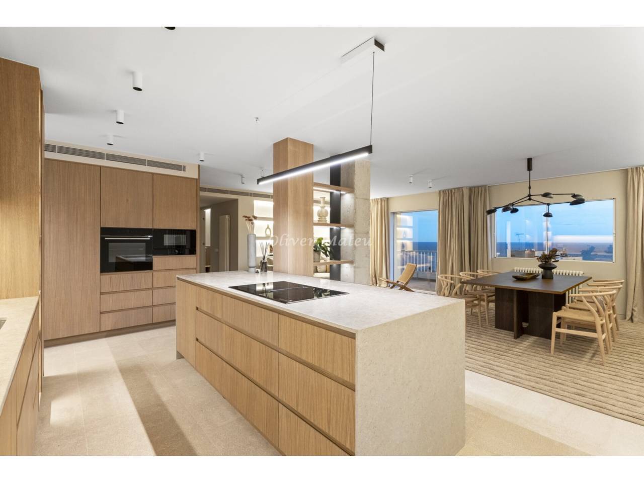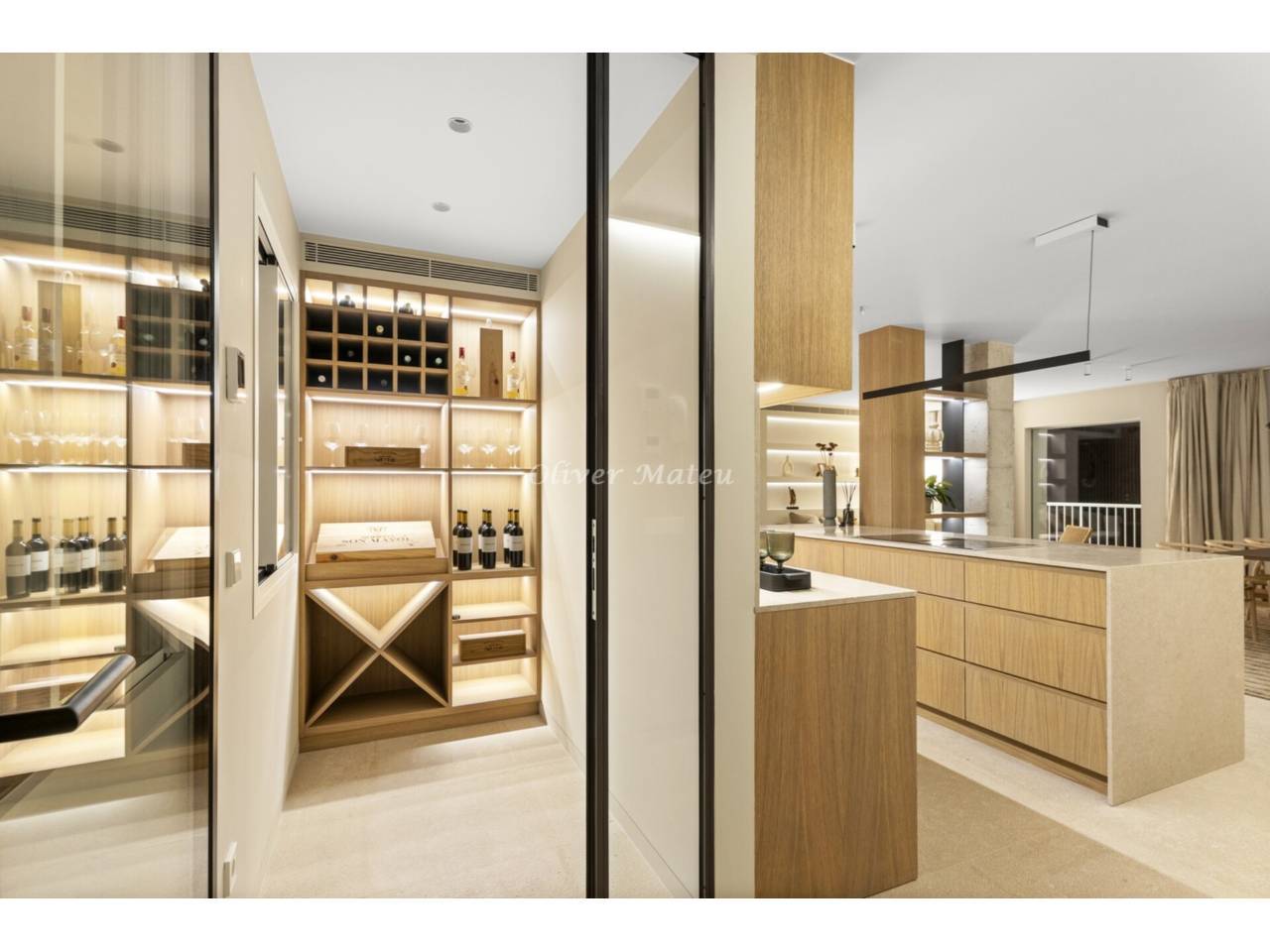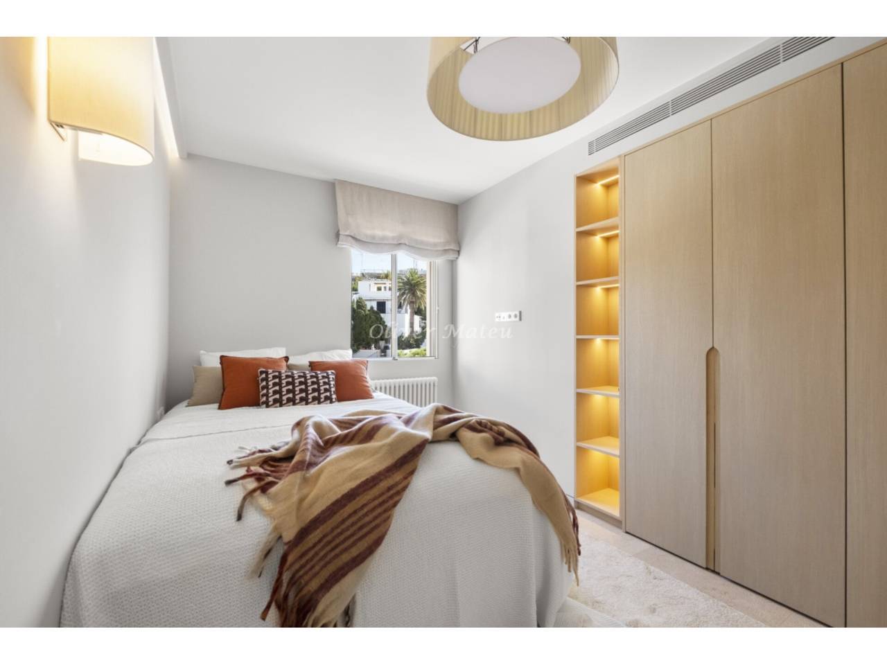 Se vende espectacular piso recién reformado en Cala Major, a tan solo 100 metros de la playa. Esta vivienda, situada en una planta alta y orientada al sur, ofrece sol durante todo el día y unas vistas inmejorables al mar, la bahía y las montañas. Con una superficie de 145 m², el piso se distribuye en tres amplios dormitorios dobles y tres baños, uno de ellos en suite. La zona de día destaca por un elegante concepto de planta abierta que integra una moderna cocina con isla y electrodomésticos Bosch, el salón y el acceso directo a una terraza de 15 m², perfecta para disfrutar del entorno y la brisa marina. El inmueble ha sido renovado por completo con materiales de primera calidad: grandes ventanales con excelente aislamiento, suelos de piedra natural, calefacción por suelo radiante en los baños y detalles exclusivos como una vinoteca climatizada, ideal para los amantes del vino. El diseño interior combina la elegancia contemporánea con el encanto mediterráneo, y la vivienda se entrega completamente amueblada con piezas de reconocidas marcas. Además, la propiedad incluye una amplia plaza de garaje en el edificio, zona de lavandería, aire acondicionado, ascensor y todas las comodidades para entrar a vivir. Una oportunidad única para quienes buscan lujo, confort y una ubicación privilegiada junto al mar en una de las zonas más demandadas de Mallorca.