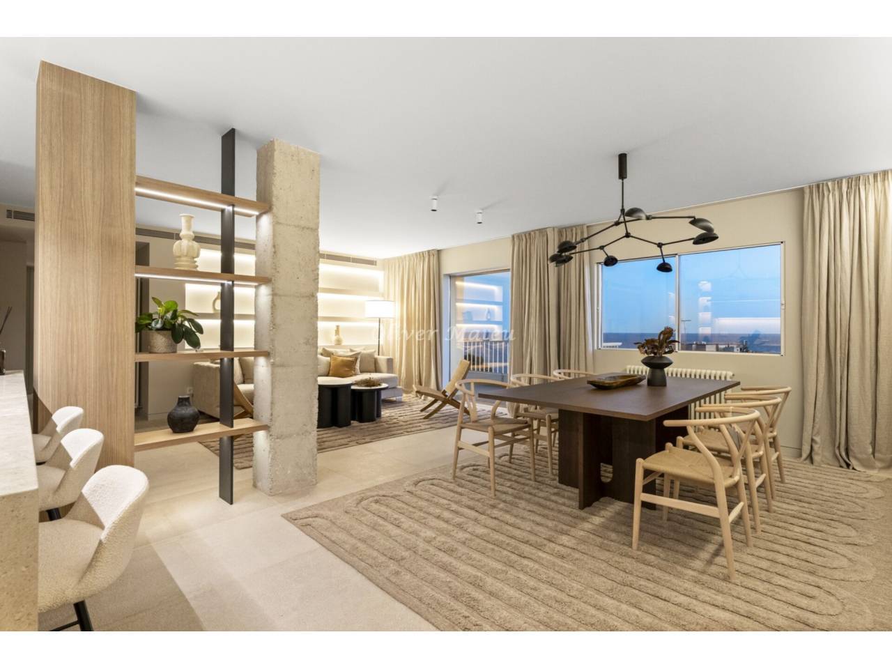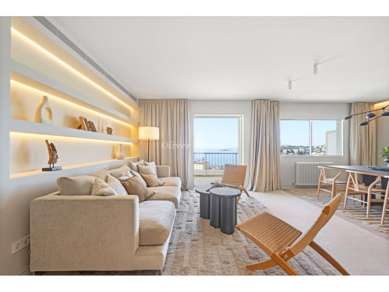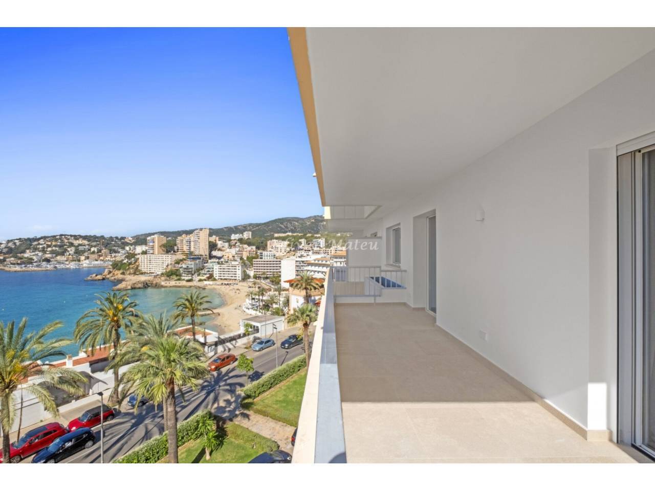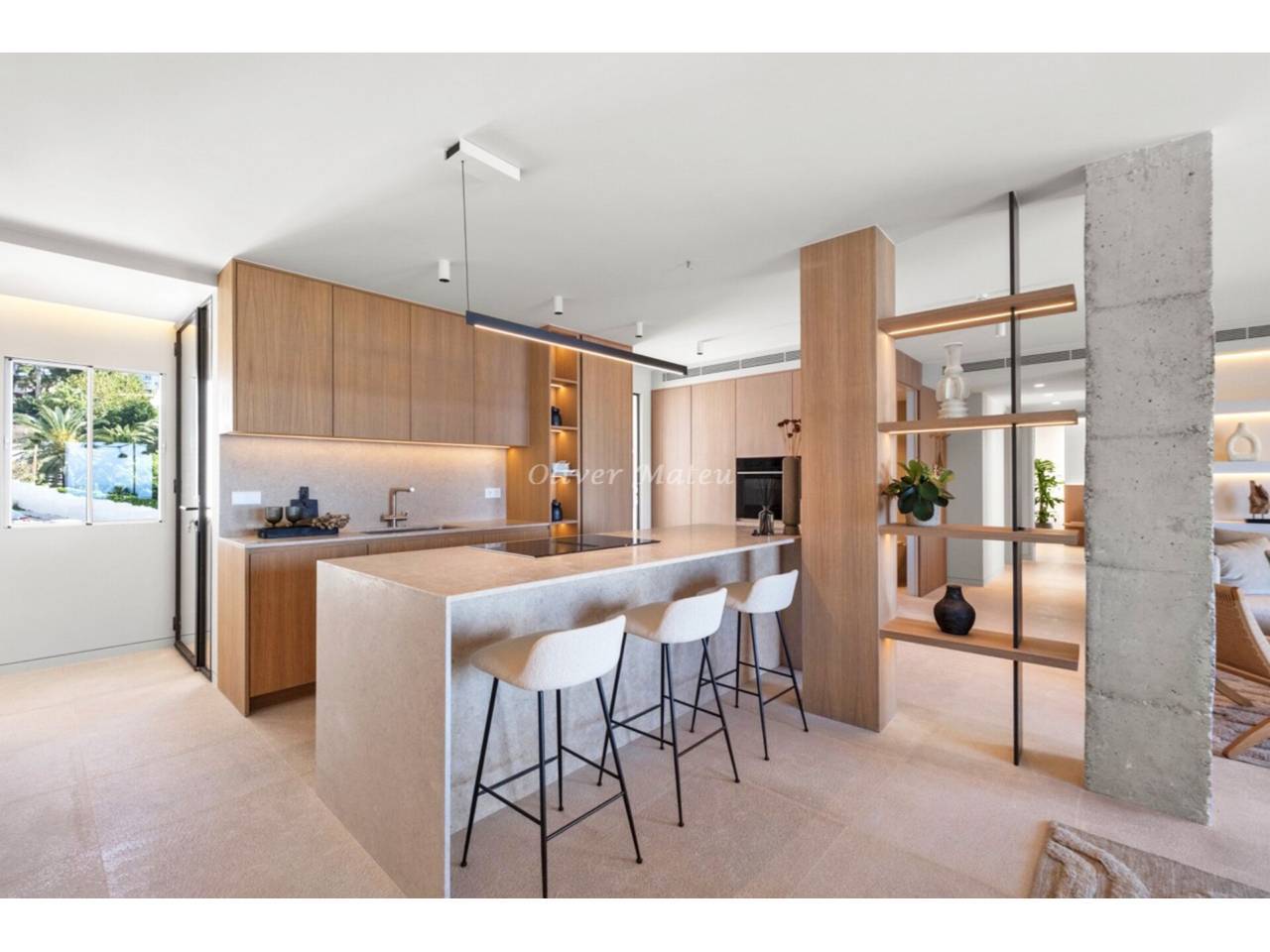 Se vende espectacular piso recién reformado en Cala Major, a tan solo 100 metros de la playa. Esta vivienda, situada en una planta alta y orientada al sur, ofrece sol durante todo el día y unas vistas inmejorables al mar, la bahía y las montañas. Con una superficie de 145 m², el piso se distribuye en tres amplios dormitorios dobles y tres baños, uno de ellos en suite. La zona de día destaca por un elegante concepto de planta abierta que integra una moderna cocina con isla y electrodomésticos Bosch, el salón y el acceso directo a una terraza de 15 m², perfecta para disfrutar del entorno y la brisa marina. El inmueble ha sido renovado por completo con materiales de primera calidad: grandes ventanales con excelente aislamiento, suelos de piedra natural, calefacción por suelo radiante en los baños y detalles exclusivos como una vinoteca climatizada, ideal para los amantes del vino. El diseño interior combina la elegancia contemporánea con el encanto mediterráneo, y la vivienda se entrega completamente amueblada con piezas de reconocidas marcas. Además, la propiedad incluye una amplia plaza de garaje en el edificio, zona de lavandería, aire acondicionado, ascensor y todas las comodidades para entrar a vivir. Una oportunidad única para quienes buscan lujo, confort y una ubicación privilegiada junto al mar en una de las zonas más demandadas de Mallorca.
