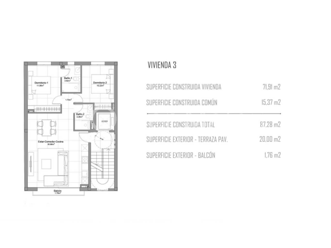 Ático de obra nueva en construcción situada en la zona de Son Forteza. Muy buen comunicada con autopista. Dispone de 2 habitaciones y dos baños con una terraza en la azotea del edificio de 20² . Cocina amueblada, aire acondicionado frio/calor, cerramientos en aluminio blanco con rotura de puente térmico, armarios empotrados. Muy buenos acabados. La finalización de la obra está prevista para Julio 2026. Edificio de tan solo 3 viviendas.