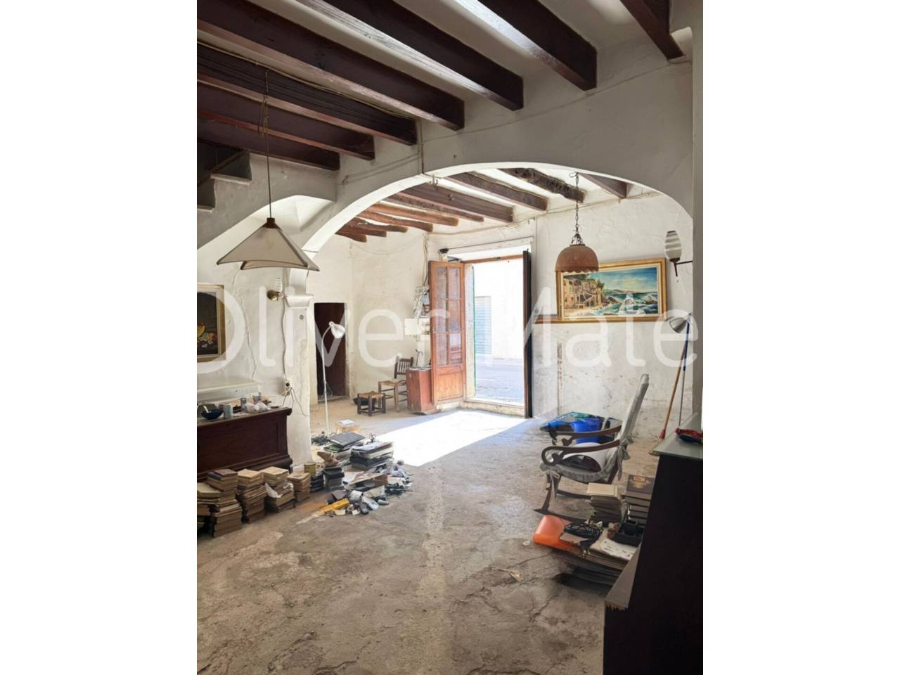 Casa mallorquina de dos plantas de 335 m ² construidos . Consta de 5 dormitorios, dos en planta baja, cocina, salón, baño, pequeño patio. Garaje con entrada a dos calles. Se entrega proyecto completo de reforma . Solicite más información.